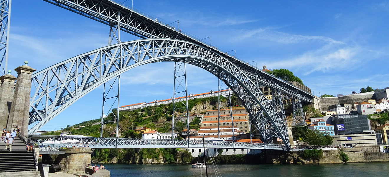 D. Luis I Bridge was inaugurated in 1886, comprising two overlapping iron decks. The bridge is 395 meters long and 8 meters wide, and its arch is still considered the world’s biggest one in forged iron.