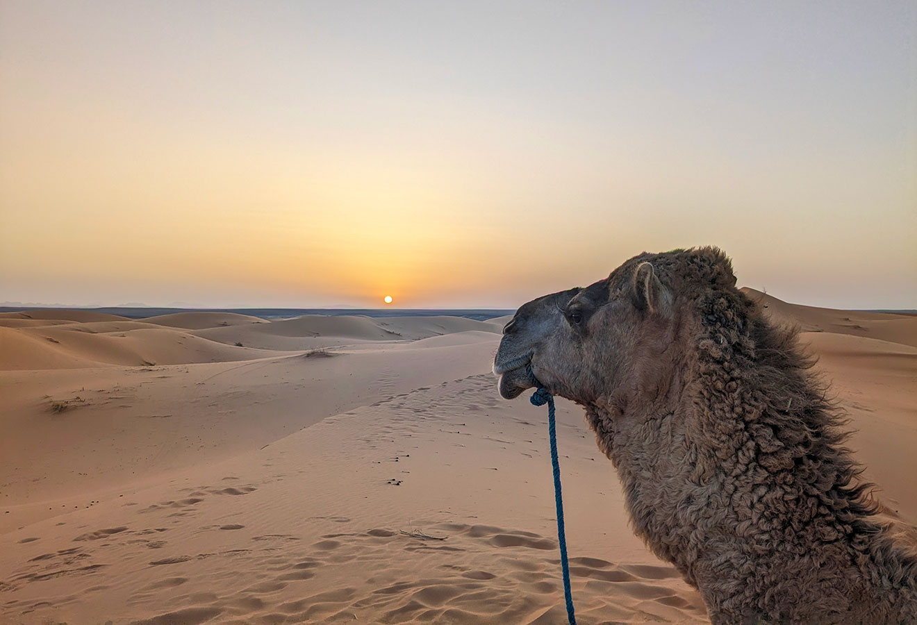 It was interesting to see how the guides reshaped the steeper parts of the dunes so the camels could climb more easily — and probably to make the ride more comfortable for us too.